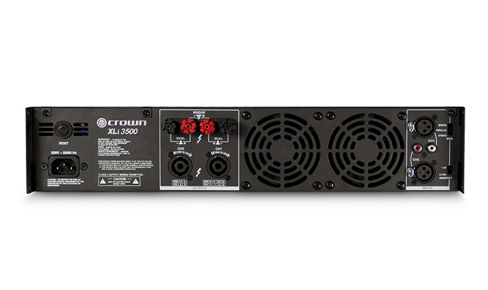 Cục đẩy Crown XLI 3500 sử dụng 2 kênh tách biệt, 1 kênh mono cho công suất đầu ra lên đến 2700W hay 1000W kênh cho 2 kênh stereo với loa 8 Ohm.