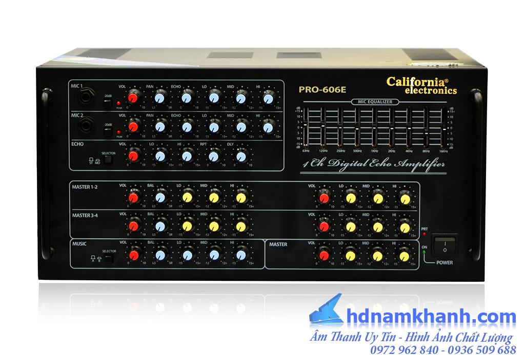 Để lý giải vì sao California Pro 606E làm được những điều mà trước giờ chưa có một amply nào làm được, hãy cùng chúng tôi tìm hiểu xem âm thanh đi qua 606E được chỉnh như thế nào nhé. Ở một chiếc amply bình thường, với mỗi một đôi loa, việc chỉnh âm sẽ bao gồm: đường micro ( với các chức năng điều chỉnh VOL, PAN, ECHO, LO, MID, HI), kênh master (gồm có VOL, LO, MID, HI), ECHO ( VOL, LO, HI, RPT, DLY), đường music ( VOL, BAL, LO, MID, HI) và tính năng Advanced Mic Equalizer (nếu có). Riêng đối với thiết bị cao cấp 606E, âm thanh được chỉnh ở đường micro, kênh master 1, master 2, master tổng, đường music 1, music 2 và music tổng, tính năng Advanced Mic Equalizer. Qua 3 đường master, độ sạch của âm thanh cho ra gần như là tuyệt đối – điều mà những người chơi âm thanh từng cho là khó có thể đạt được. Đó chính là lí do đưa California 606E trở thành amply karaoke số 1 Việt Nam.