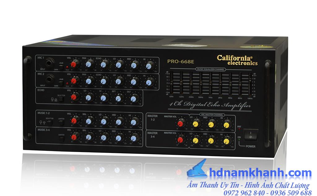 Amply California PRO 668E được thiết kế từ Hoa Kỳ và được sản xuất tại Hàn Quốc. Tất cả các linh kiện 100% MADE IN KOREA, sản xuất dựa trên công nghệ hiện đại và tân tiến nhất hiện nay, được trang bị hệ thống đảm bảo an toàn cho micro và loa. Hiện tại nhà hãng đang tiếp tục nghiên cứu và phát triển dòng sản phẩm Amply hướng tới mức hoàn hảo về âm thanh để phục vụ nhu cầu ngày càng cao của người chơi nhạc.