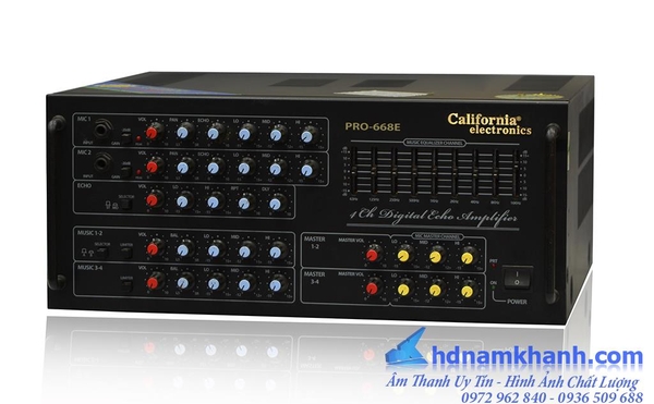 Amply California Pro 668E là thiết bị karaoke gia đình cao cấp và chuyên nghiệp mà Nhật Hoàng giới thiệu với người dùng. Amply California Pro 668E có chất lượng âm thanh tuyệt đỉnh, gói gọn trong thiết kế đẹp, vật liệu cấu thành siêu bền, sang trọng. Amply California Pro 668E là chiếc amply karaoke cao cấp xứng đáng có trong phòng khách của mọi gia đình. Sản phẩm thừa hưởng những tính năng vượt trội của Amply California Pro 668R đồng thời được thiết kế thêm Equalizer tạo nên sự mượt mà, trong trẻo cho tiếng hát.