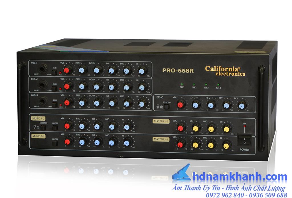 Amply California Pro 668R là dòng amply karaoke có công suất lớn, là một trong những dòng đời đầu của Amply California. Thiết bị được sử dụng nhiều trong các dàn âm thanh chuyên nghiệp. Bởi tính năng mạnh mẽ và tinh chỉnh nhạc tốt, âm thanh đầu ra chất lượng giúp sản phẩm tạo nên dấu ấn một thời trong làng âm thanh Việt. Và để thể hiện khả năng của mình, California Pro 668R có thể đánh 2 đôi loa loa hat karaoke chuyen nghiep trong dàn karaoke một cách vô tư mà không hề bị hụt hơi. Điểm này khá thuận lợi cho các quán bar, nhà hàng, cơ sở kinh doanh karaoke khi nghiên cứu set-up phòng hát. Với diện tích phòng từ 25m2 trở lên thì sự lựa chọn Ampli California Pro 668R thực sự là quá hợp lý. Với diện tích phòng quá lớn thì người dùng có thể bổ sung thêm cục đẩy công suất để đưa âm thanh trở nên mạnh mẽ uy lực hơn. Còn với dàn karaoke gia đình thì sản phẩm là một amply chuyên nghiệp giá rẻ đáng mua.
