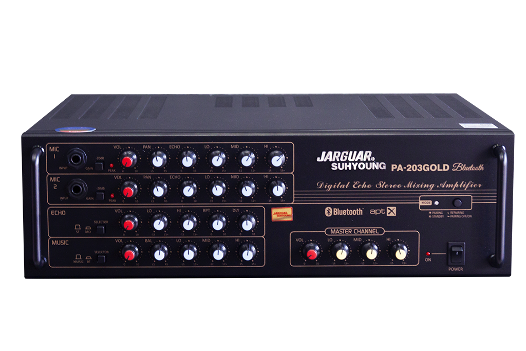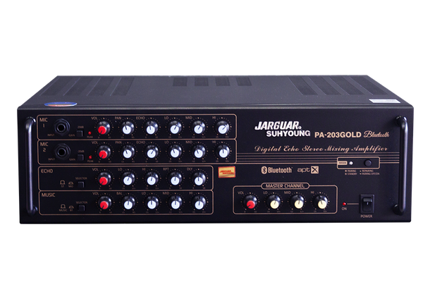 Amply Jarguar PA 203 Gold Bluetooth là dòng amply cơ karaoke được hãng Jarguar Suhyoung mới cho ra mắt và do công ty Komi nhập khẩu và phân phối chính thức tại thị trường Việt Nam. Với việc thêm tính năng kết nối bluetooth hiện đại giúp người dùng có thể kết nối không dây với amply từ các thiết bị khác được dễ dàng hơn, sử dụng nguồn nhạc vô tận từ internet một cách dễ dàng hơn. Dòng sản phẩm được kế thừa được những ưu điểm của các thế hệ amply trước đó cùng những thay đổi mạnh mẽ về công nghệ chắc chắn sẽ mang đến quý khách hàng trải nghiệm vô cùng tuyệt vời.