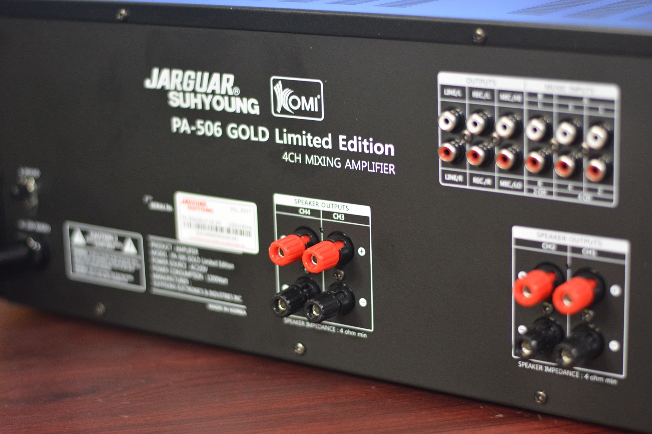 Amply Jarguar 203 Gold Limited Edition là phiên bản đặc biệt với số lượng sản xuất có hạn của hãng Jarguar Suhyoung Hàn Quốc. Sản phẩm amply karaoke đặc biệt này là sự kế thừa và phát triển thêm từ phiên bản Jarguar 203N Gold đã và đang được người tiêu dùng Việt Nam ưa chuộng. Amply Jarguar 203 Gold Limited Edition là 1 trong 4 mẫu nằm trong Seri LIMITED EDITION mà hãng Jarguar Suhyoung vừa giới thiệu đến các khách hàng đam mê ca hát tại thị trường Việt Nam. Sản phẩm là sự nối tiếp thành công của dòng amply Jarguar Suhyoung PA 203N Gold trên thị trường âm thanh karaoke với cải tiến về công nghệ nhằm mang tới những ampli chất lượng.