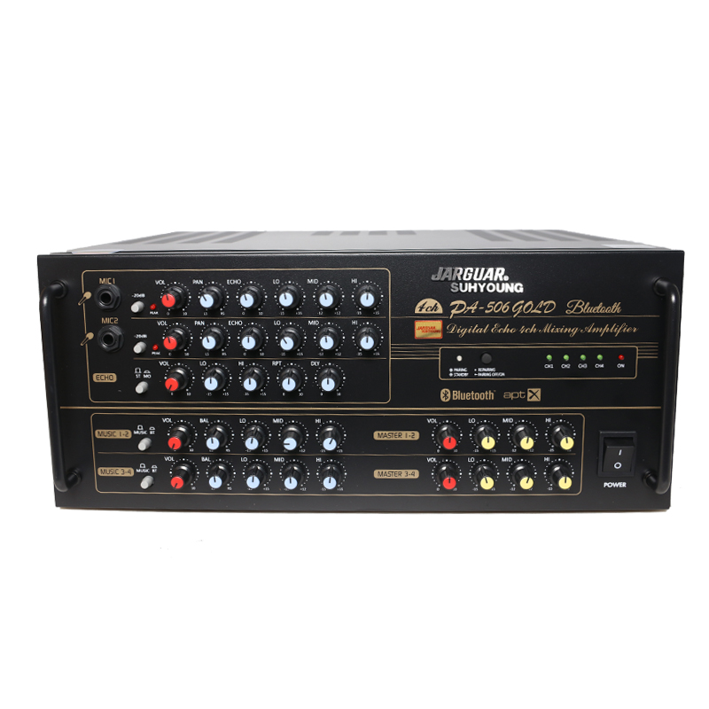 Amply Jarguar Suhyoung PA- 506 Gold Bluetooth là dòng Amply 4 kênh nổi tiếng của hãng, tích hợp nhiều công nghệ tiên tiến nhất theo chuẩn châu Âu