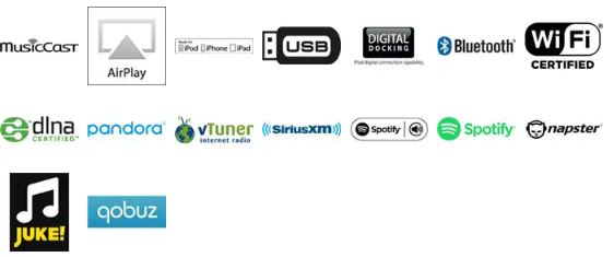 Nhờ có kết nối mạng internet, Yamaha R-N402 được tích hợp đầy đủ các ứng dụng streaming trực tuyến gồm Pandora, Napster, SiriusXM Internet Radio, Tidal và Deezer. Giao thức DLNA cho phép nó truy cập và phát nhạc từ bất kì nguồn lưu trữ nối mạng nào trong mạng nội bộ như NAS, PC.