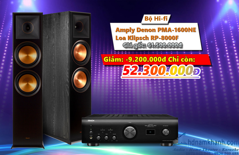 Bộ Hi-fi Amply Denon PMA 1600NE + Loa Klipsch RP 8000F là bộ ghép nghe nhạc được đánh giá là hoàn hảo trong phân khúc 50tr cho phòng khách hay phòng nghe nhạc có diện tích khoảng 20-30m.