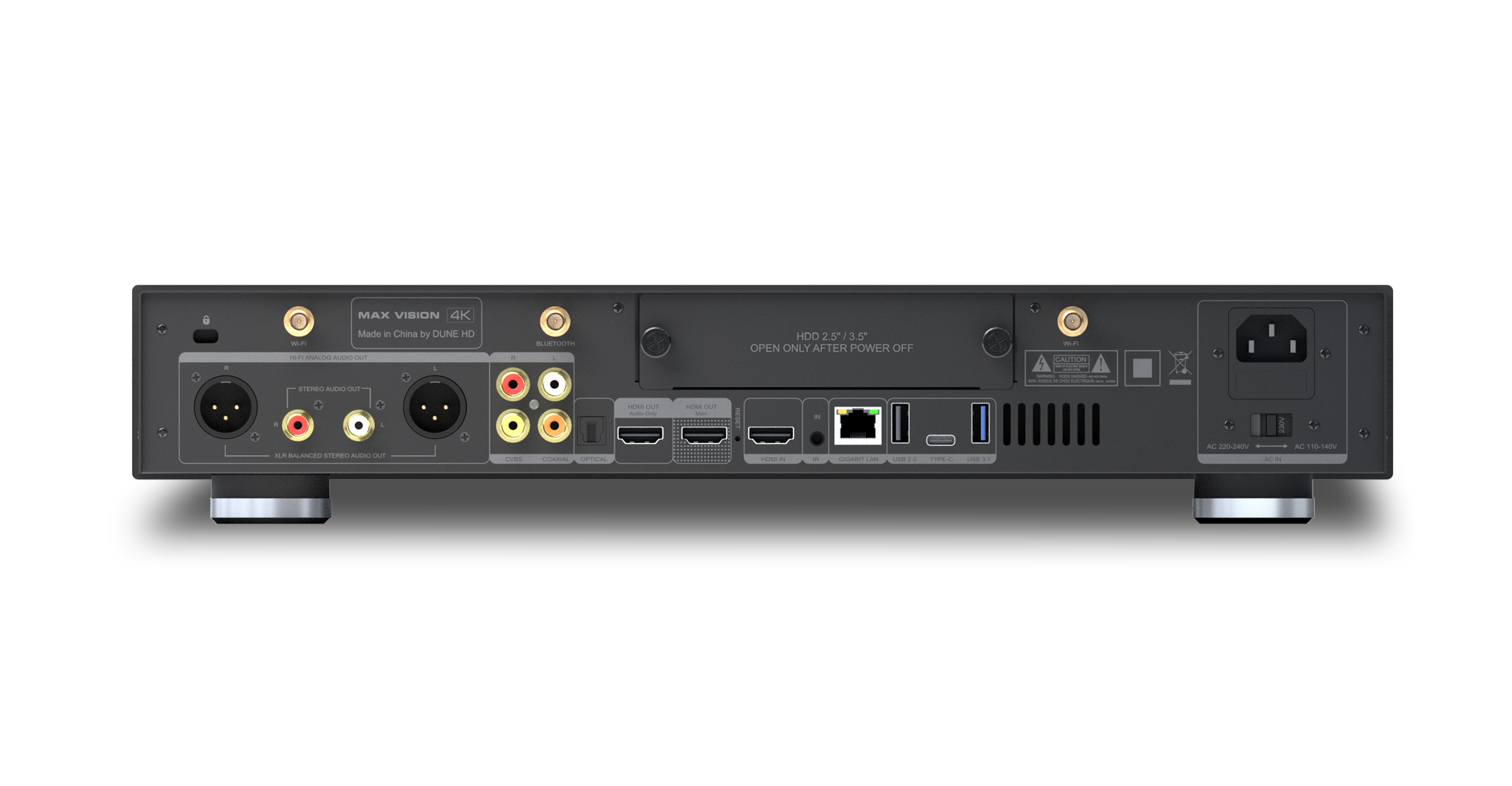 Đàu Phát Dune HD Max Vision 4K có các Cổng kết nối đa dạng cùng với khả năng xử lý âm thanh ấn tượng giúp bạn dễ dàng kết hợp với các hệ thống xem phim, nghe nhạc chất lượng nhất hiện nay. Hai điều khiển được cũng cấp đi kèm cho khả năng điều khiển từ xa dễ dàng, kết hợp điều khiển chuyên dụng cung cấp chức năng AirMouse để điều khiển thuận tiện các ứng dụng Android không được tối ưu hóa để điều khiển qua điều khiển từ xa thông thường và cung cấp chức năng Micrô cho tìm kiếm bằng giọng nói trong các ứng dụng hỗ trợ nó.
