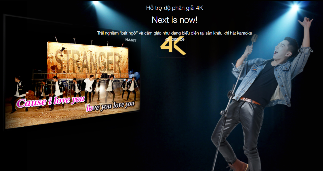 - Tiếp tục duy trì và phát huy lợi thế bằng công nghệ nén mới H.265, đầu tiên trong các sản phẩm Karaoke VOD trên thị trường, giúp tối ưu hóa dung lượng ổ cứng mà vẫn giữ nguyên chất lượng bài hát.