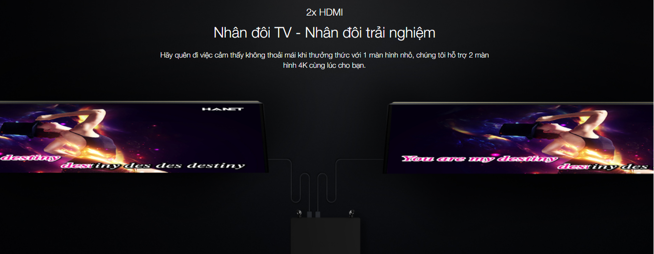 Hãy quên đi việc cảm thấy không thoải mái khi thưởng thức với 1 màn hình nhỏ, chúng tôi hỗ trợ 2 màn hình 4K cùng lúc cho bạn.