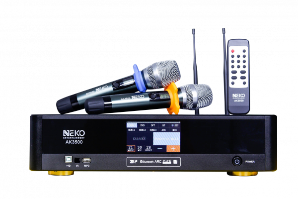 Hiện nay, với sự phát triển vượt bậc của công nghệ số thì tất cả các thiết bị như cục đẩy công suất, vang số/vang cơ/nâng tiếng, micro loa đã được tích hợp trong một “Thiết bị” duy nhất. đó là sản phẩm tích hợp “ 3 in 1” và “4 in 1”,…. NEKO AK-3500 là sản phẩm được các chuyên gia và kỹ sư của hãng dầy công nghiên cứu phối ghép nhuần nhuyễn giữa Đẩy công xuất trộn Vang số kết hợp ghép Micro không dây trên cùng một thiết bị, chính vì vậy nó được gắn kèm với tên “3 in 1”.