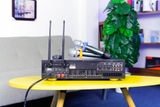 - Đa chức năng, có thể đảm nhiệm vị trí là 1 chiếc cục đẩy công suất 2 kênh, có chức năng đầy đủ của 1 chiếc vang số thêm vào đó là bộ đôi tay micro không dây UHF.