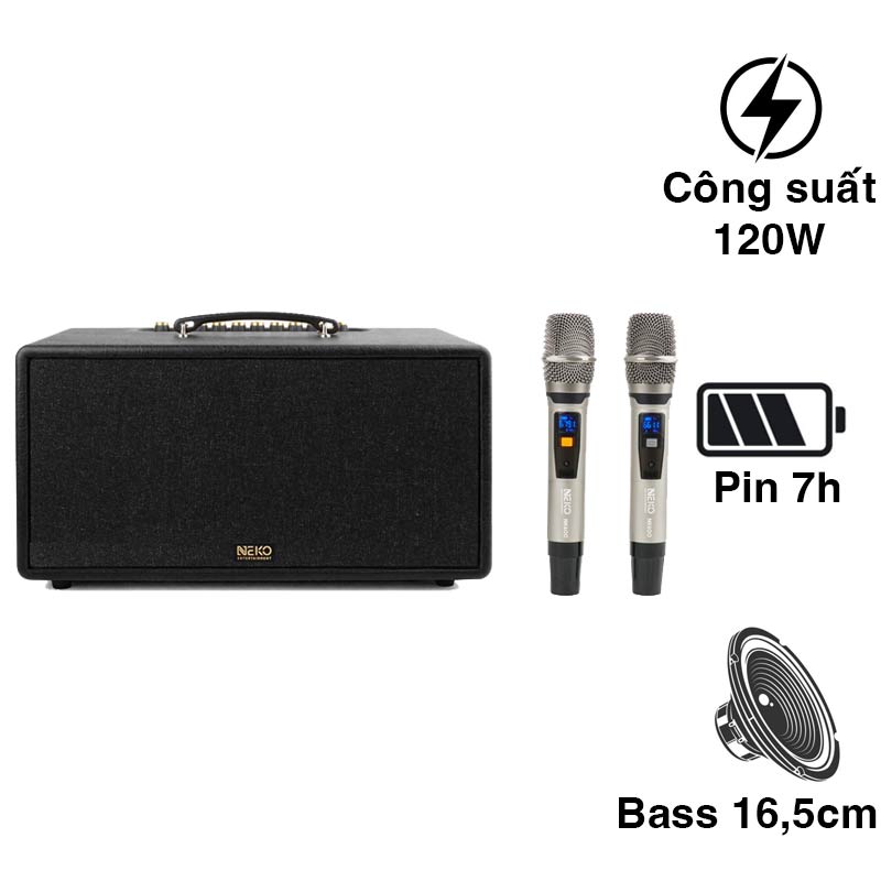 - Loa Neko NK600 có mức công suất 120W kết hợp với hệ thống loa cao cấp, mang đến chất âm chi tiết và chân thực.