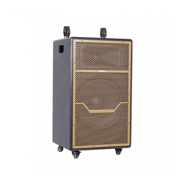Ở bên thùng loa có 2 hốc tay cầm giúp việc xách loa di chuyển hay lên xuống thuận tiện, mặt trên trang bị 2 lỗ để micro đứng tiện lợi. Nổi bật ở mặt trước loa là tấm ê căng màu vàng sang trọng tôn lên thẩm mỹ, được làm bằng thép cứng bảo vệ các củ loa bên trong khỏi bụi bẩn, va chạm. Mặt sau loa cũng được trang bị tay cầm và bên dưới là hệ thống tùy chỉnh và kết nối được bố trí khoa học, dễ sử dụng.