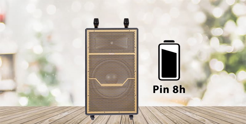 - Loa di động tích hợp amply với pin 8h (50% volume) thoải mái chơi cả ngày