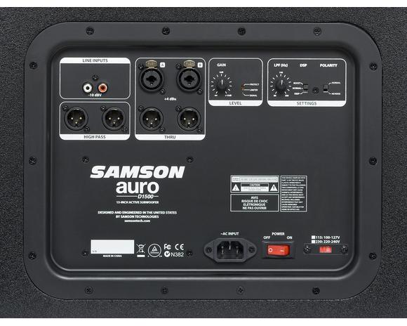 Subwoofer SamSon Auro D1500 có trình điều khiển tần số thấp hành trình dài 15" và bộ khuếch đại Class D nhẹ. Được thiết kế để thuận tiện, D1500 bao gồm kết hợp XLR-1/4" cân bằng và các tùy chọn đầu vào âm thanh nổi stereo không cân bằng để dễ dàng định tuyến thẳng đầu ra của bộ trộn DJ của bạn. vào loa siêu trầm. Hệ thống này cũng có hai bộ tùy chọn đầu ra âm thanh nổi, bao gồm đầu ra bộ lọc thông cao XLR âm thanh nổi để dễ dàng tích hợp loa vệ tinh được cấp nguồn vào thiết lập PA của bạn, cũng như các đầu ra XLR toàn dải song song bổ sung. D1500 cũng đi kèm với một núm điều khiển bộ lọc thông thấp có thể thay đổi và một công tắc có thể lựa chọn cho các cài đặt DSP được điều chỉnh trước cho các tình huống cụ thể. Ngoài ra, các đèn LED chỉ báo Tín hiệu, Giới hạn và Bảo vệ cung cấp khả năng giám sát liên tục các mức của bộ khuếch đại, trong khi hệ thống'